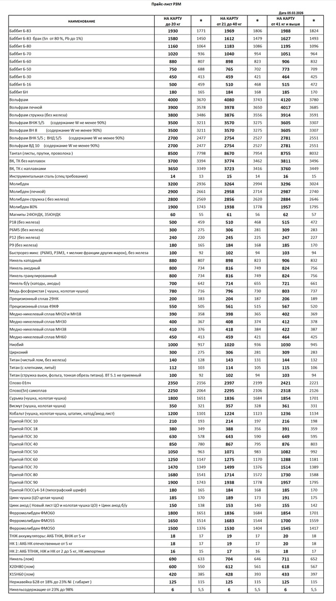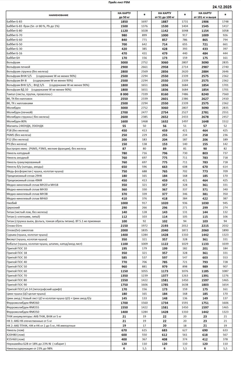 НАШИ ЦЕНЫ НА ЛОМ РЕДКОЗЕМЕЛЬНЫХ МЕТАЛЛОВ