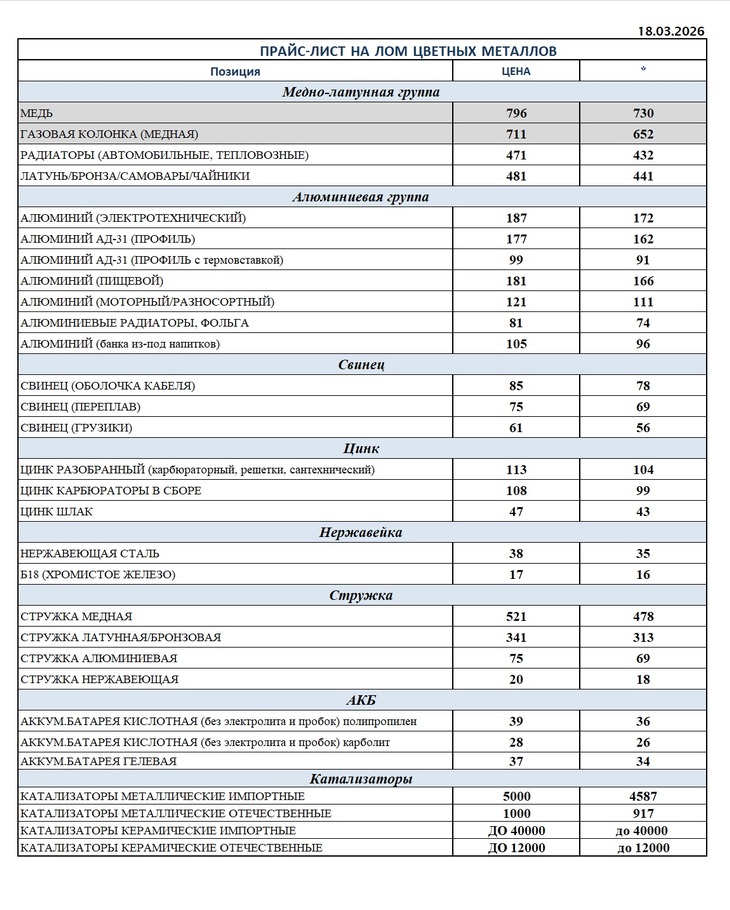 НАШИ ЦЕНЫ НА ЛОМ ЦВЕТНЫХ МЕТАЛЛОВ