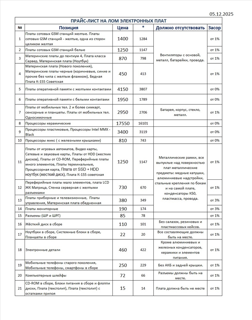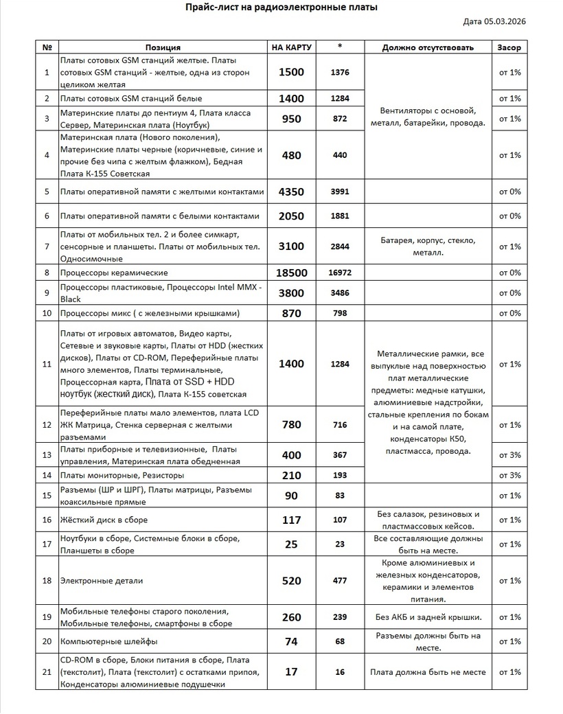 НАШИ ЦЕНЫ НА РАДИОЭЛЕКТРОННЫЙ ЛОМ